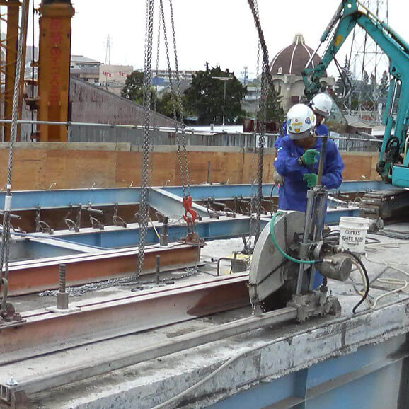 階段を広げたり、エスカレーターを設置するための開口部を既存の階段につくる切断作業