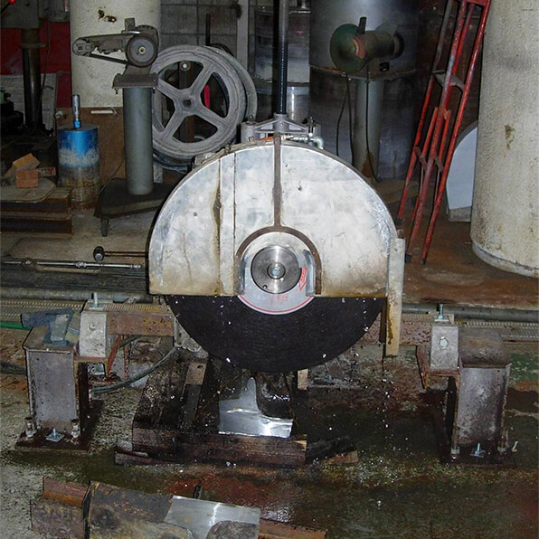 ウォールソー工法は、専用のレールを設置して、その上を移動する特殊切断機でコンクリート構造物の床や壁など平面、斜面の切断を行います。